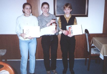 l. Pokorná Regina 2195 Bratislava 5 4 0 1 4 b. 2. Orságová Erika 1904 Spišská Nová Ves 5 3 1 1 3,5 3. Pokorná Renáta 1983 Radegast Bratislava 5 2 1 2 2,5 4. Sýčová Miroslava 2023 Slovakofarma HIohovec 5 l 2 2 2,0 5. Kviatkovská Zuzana 1864 Turčianske Teplice 5 0 3 2 1,5 6. Vojenčiaková Marianna 1775 Železiarne Podbrezová 5 0 3 2 l.5 |